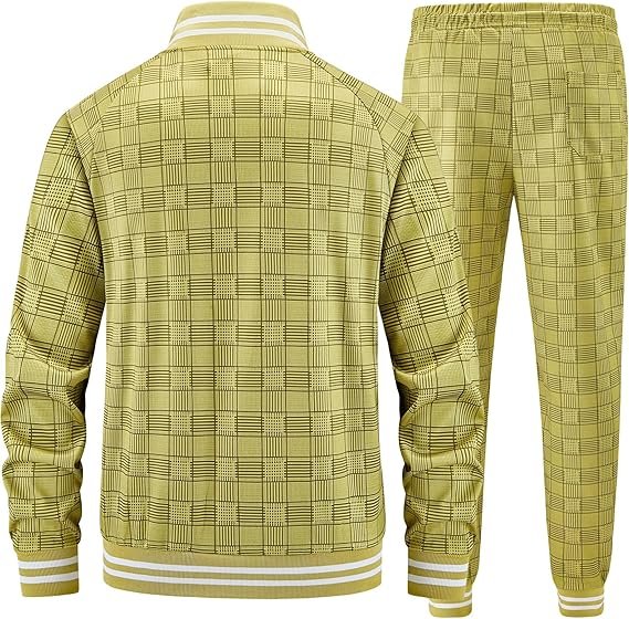 Men Tracksuits Full-zip Long Sleeve Plaid Track Jackets and Pants 2 Piece In Yellow